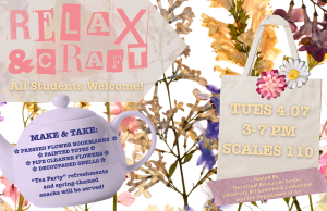 All Relax & Craft events made possible by the Department of Art, Hanes Gallery, and stArt.